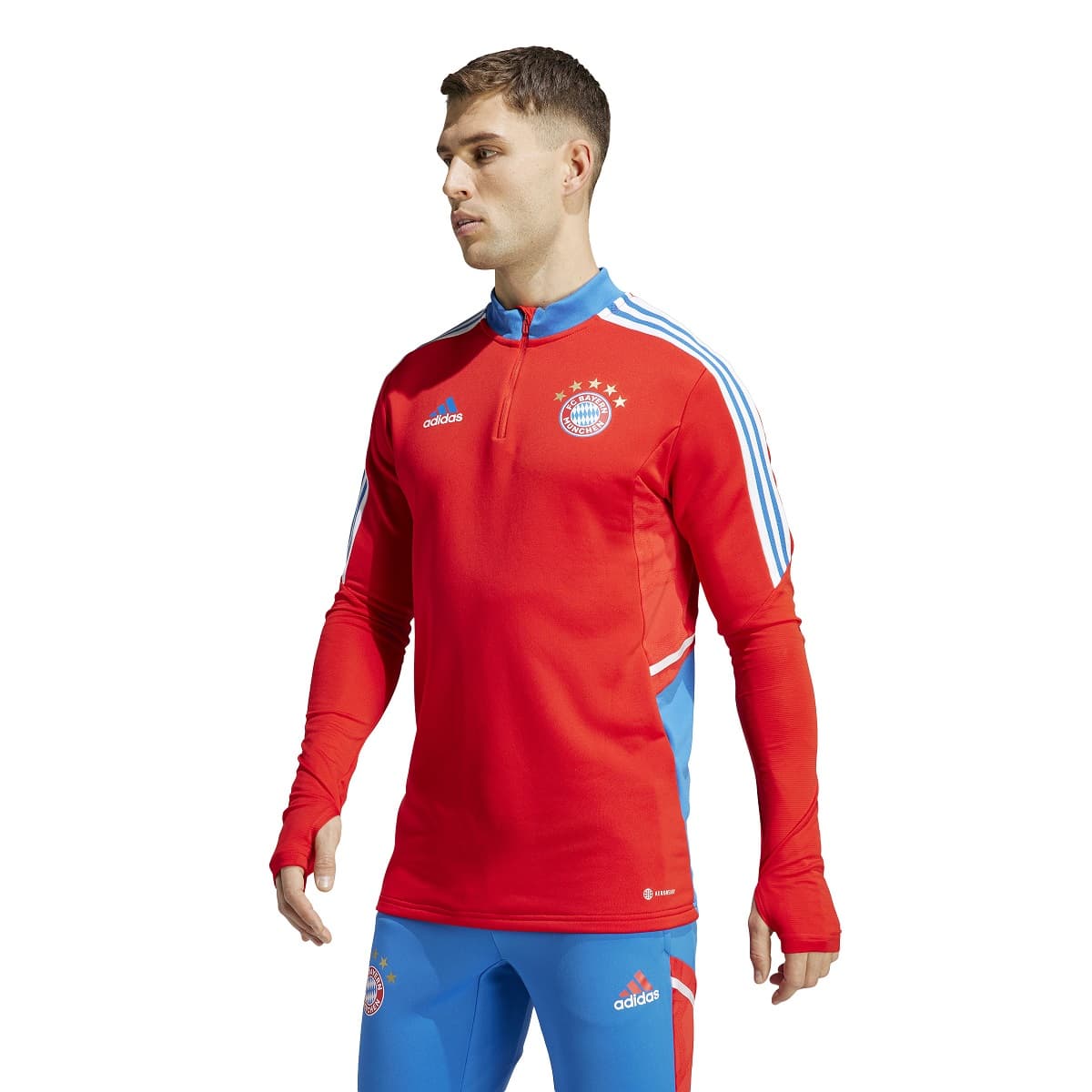 BAYERN MUNICH TRAINING DRILL RED TOP 2022-23 - Image 1"A history of success only makes you hungry for more. This slim-fitting adidas Condivo 22 training top is all about extending FC Bayern's winning streak. Pull it on when you need an extra layer. AEROREADY wicks moisture to keep you comfortable, and that quarter zip means you can take it off quickly when it's no longer needed. Made with 100% recycled materials, this product represents just one of our solutions to help end plastic waste."