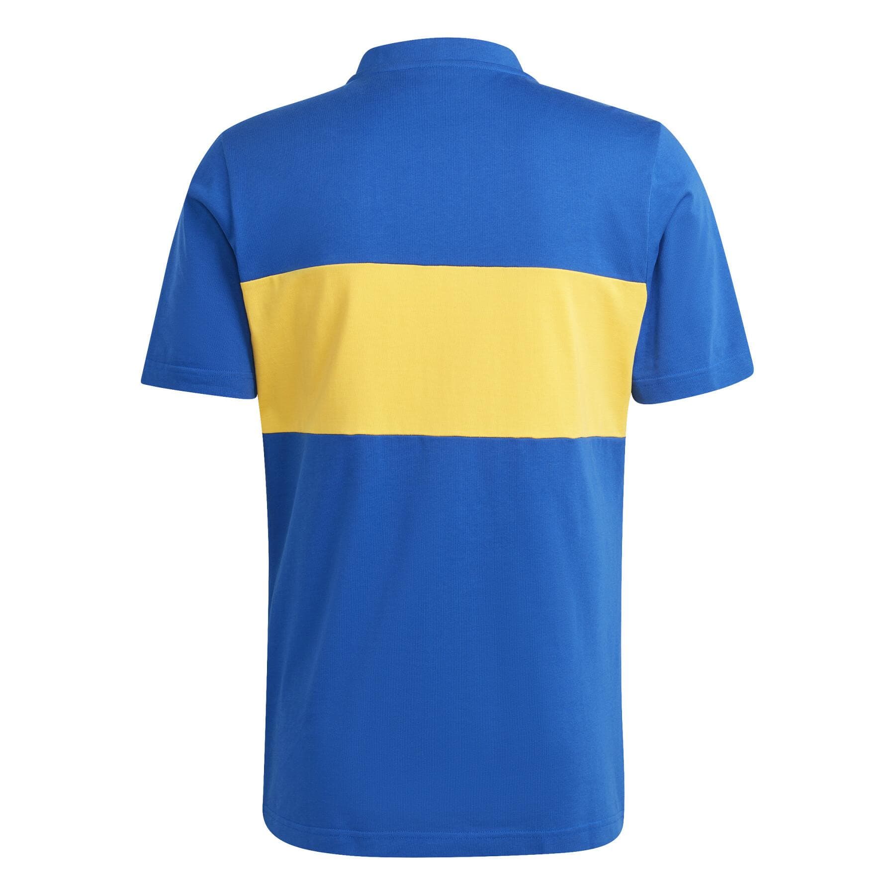 BOCA JUNIORS RETRO VINTAGE SHIRT - Image 1"Now 110 years on from their first top-flight match, this adidas football jersey recreates the shirt Boca Juniors wore back in 1913. While that yellow chest band might be familiar to modern-day fans, the laced V-neck collar is definitely a blast from the past. The absence of a team badge on the chest is another retro feature, but for those who are interested, an era-appropriate crest is included on the commemorative jock tag. A minimum of 70% of this product is a blend of recycled and renewable materials."