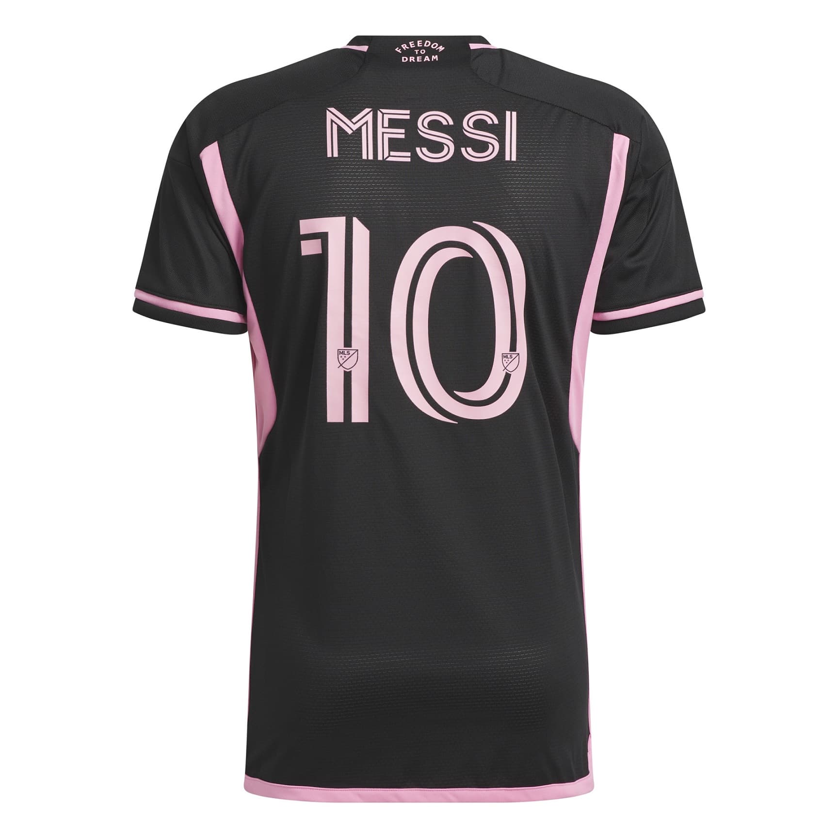 INTER MIAMI AUTHENTIC MATCH MESSI AWAY SHIRT 2024 - Image 1"When darkness descends, Miami lights up. Inspired by Magic City's glittering waterfront, this Inter Miami CF away authentic jersey from adidas enchants with pink details and an undulating graphic. Created to keep football players at full speed, it combines lightweight fabric and moisture-wicking AEROREADY. The back neck signoff displays the team's aspirational motto. This product is made with 100% recycled materials. By reusing materials that have already been created, we help to reduce waste and our reliance on finite resources and reduce the footprint of the products we make."