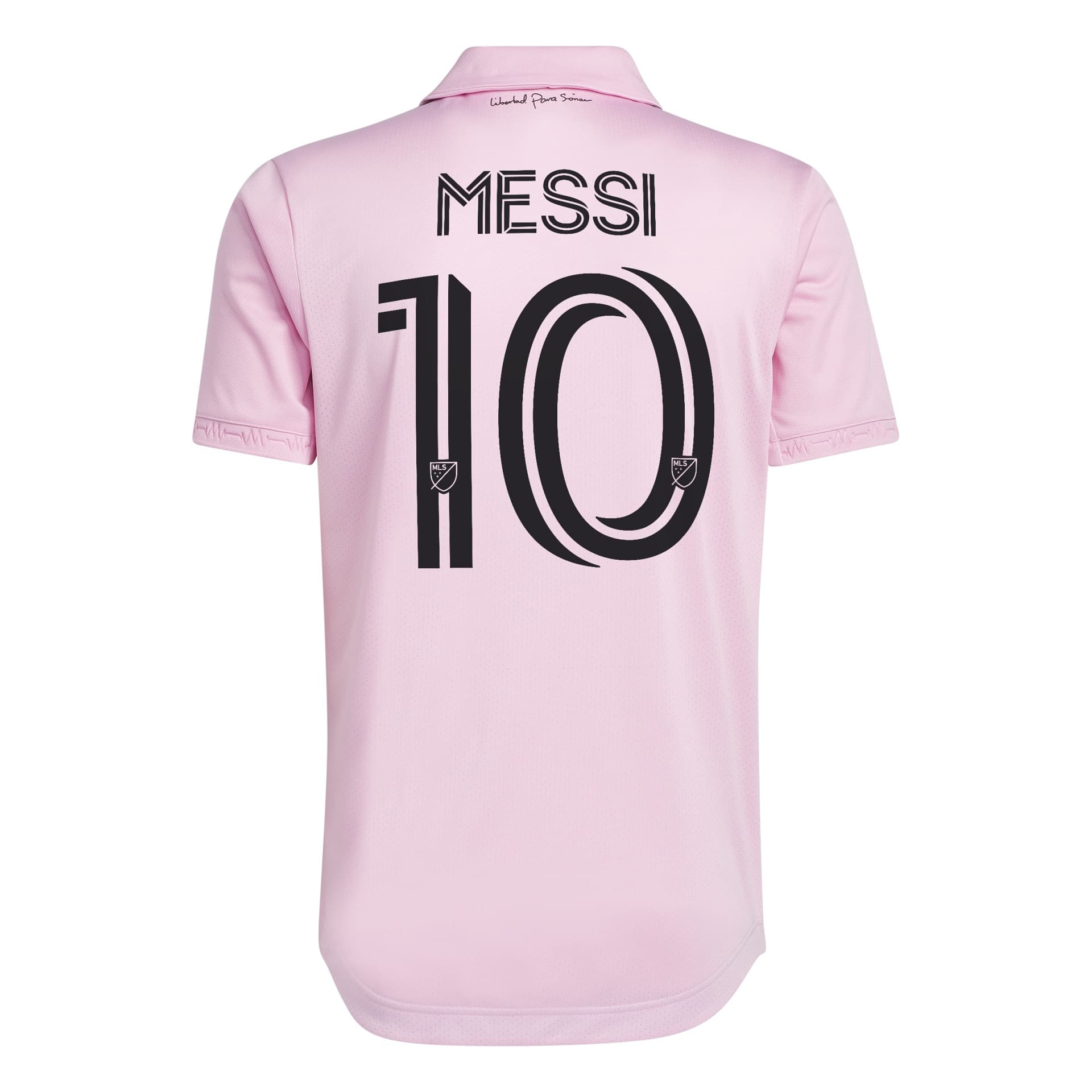 INTER MIAMI MESSI AUTHENTIC MATCH HOME SHIRT 2023 - Image 1"Bathed in pink and worn by football royalty. This adidas authentic jersey salutes the fans with heartbeat-style graphics on the cuffs and a jock tag signoff. The polo collar and piqué fabric combo further quicken the pulse. Moisture-absorbing AEROREADY and lightweight details help you find your rhythm on the pitch and Lionel Messi's name and number on the back add the inspiration. This product is made with 100% recycled materials. By reusing materials that have already been created, we help to reduce waste and our reliance on finite resources and reduce the footprint of the products we make."