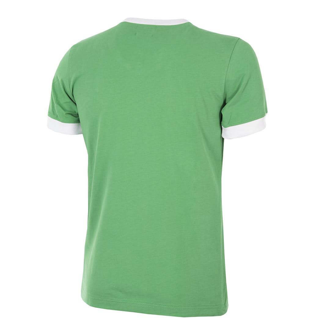 IRELAND 1965 RETRO FOOTBALL SHIRT - Image 1100% cotton With the powerhouse midfield presence of Johnny Giles leading a fine generation of talented defensive players like Hurley, Meagan, Dunne and Cantwell; the 1960s was the decade when for the first time the Republic of Ireland's national team looked set to make a name for itself. Their hopes were ended on several occasions by Spain. After defeating Iceland and Austria in the qualifying rounds for the 1964 Nations Cup, a home and away tie against the Spanish was all that stood in the way of Ireland reaching the finals. A thumping 7-1 aggregate defeat made those finals feel rather more distant. Another defeat by the same opponents in a Paris play-off two years later ended hopes of Irish participation in the 1966 World Cup.