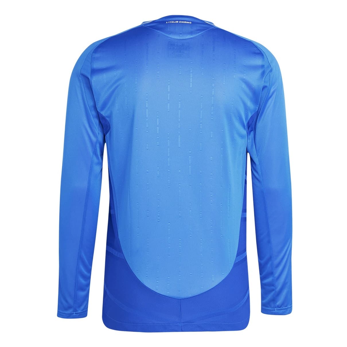 ITALIA FIGC AUTHENTIC HOME LONG SLEEVES SHIRT 2024-25 - Image 1"They're famous for playing in blue, but their national flag flies green, white and red. So this adidas Italy home authentic jersey displays those famous il Tricolore colours on the 3-Stripes that run down its long sleeves for peak national pride. Created for performance, this shirt includes lightweight details and temperature-regulating HEAT.RDY. A heat-applied badge on the chest adds one final hit of football passion. This product is made with 100% recycled materials. By reusing materials that have already been created, we help to reduce waste and our reliance on finite resources and reduce the footprint of the products we make."