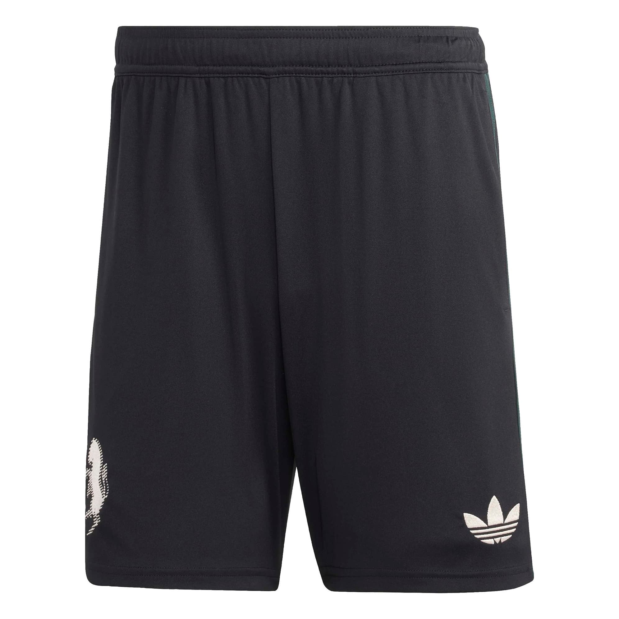 JUVENTUS 3RD SHORTS 2025-26 - Image 1Raise a glass to your football heroes. Part of an adidas third kit that pays tribute to Piedmont's wine-making tradition, these Juventus shorts flash an embroidered Trefoil and vintage badge over bold black colours. Moisture-managing AEROREADY and soft fabric ensure you stay relaxed through every second of support.