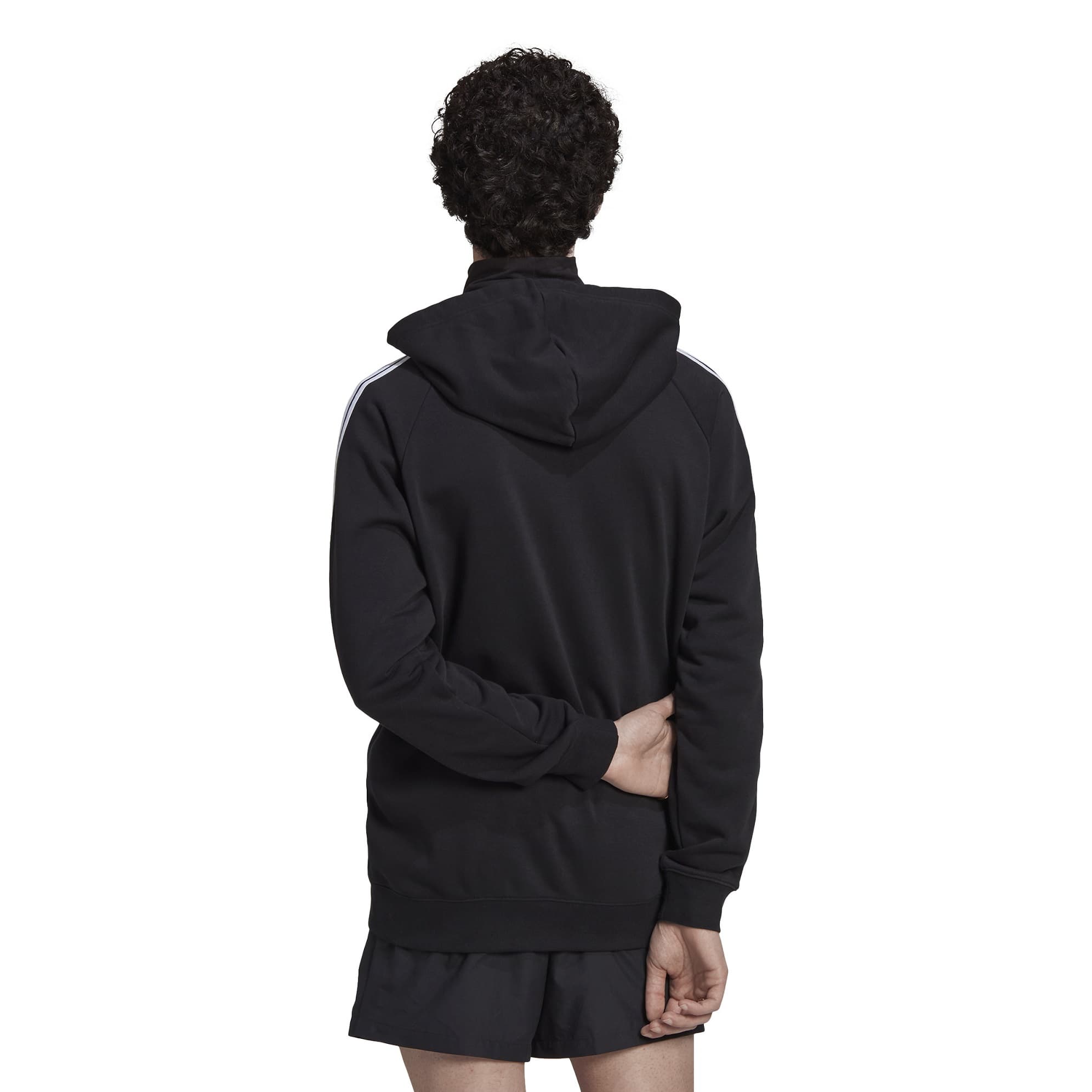 JUVENTUS HOODY FULL ZIP BLACK SWEAT 2022-23 - Image 1"Juventus' DNA is black and white. This adidas hoodie keeps things simple in those classic home colours. All you need to do to disappear into your own football world is pull up the hood, tug on those drawcords and settle back into its soft French terry fabric. Our cotton products support more sustainable cotton farming."