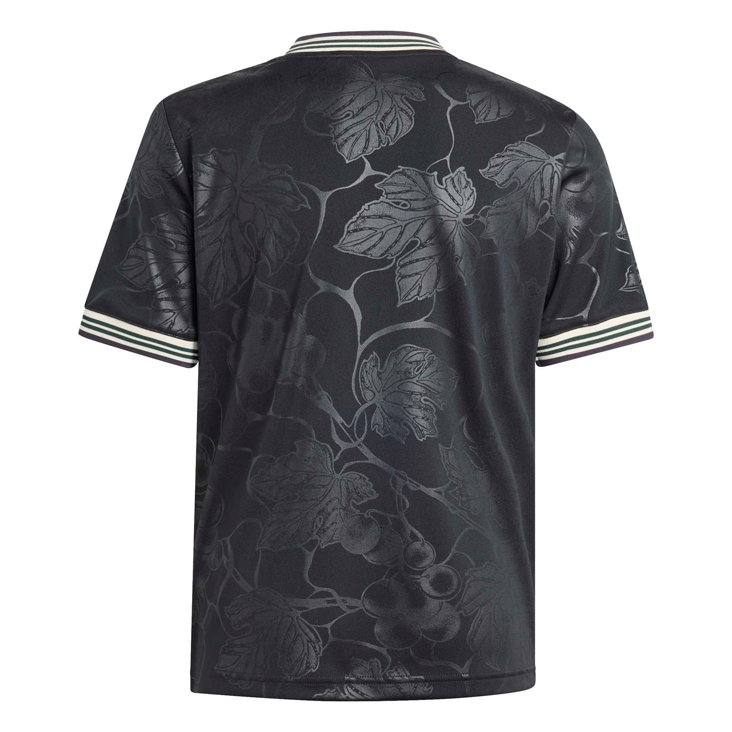 JUVENTUS JUNIOR 3RD SHIRT 2025-26 - Image 1Raise a glass to your football heroes in a juniors' Juventus jersey that pays tribute to Piedmont's wine-making tradition. Standing out from black colours, an embroidered adidas Trefoil and classic club badge join subtle, vineyard-inspired graphics to produce an understated, elegant look. Created to keep fans comfortable and relaxed, this shirt features soft fabric and moisture-managing AEROREADY.