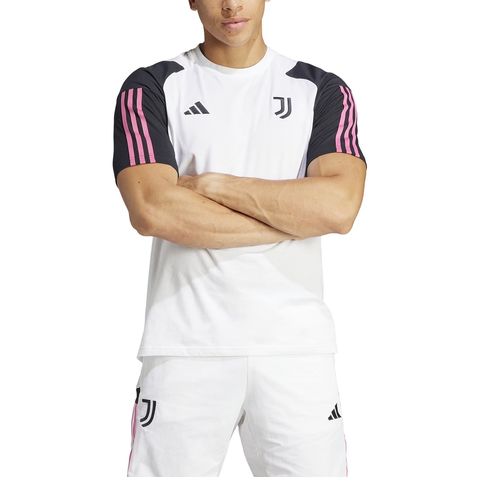 JUVENTUS PLAYER WHITE T-SHIRT 2023-24 - Image 1"Travelling to watch the team play or taking it easy at home, this adidas Tiro 23 t-shirt keeps you comfortable while paying homage to Juventus. Made from soft cotton-blend fabric and finished with a ribbed crewneck, it's always a winner. Whatever the final score is, the embroidered crest on the chest signals your unwavering support for your favourite football club. A minimum of 70% of this product is a blend of recycled and renewable materials."