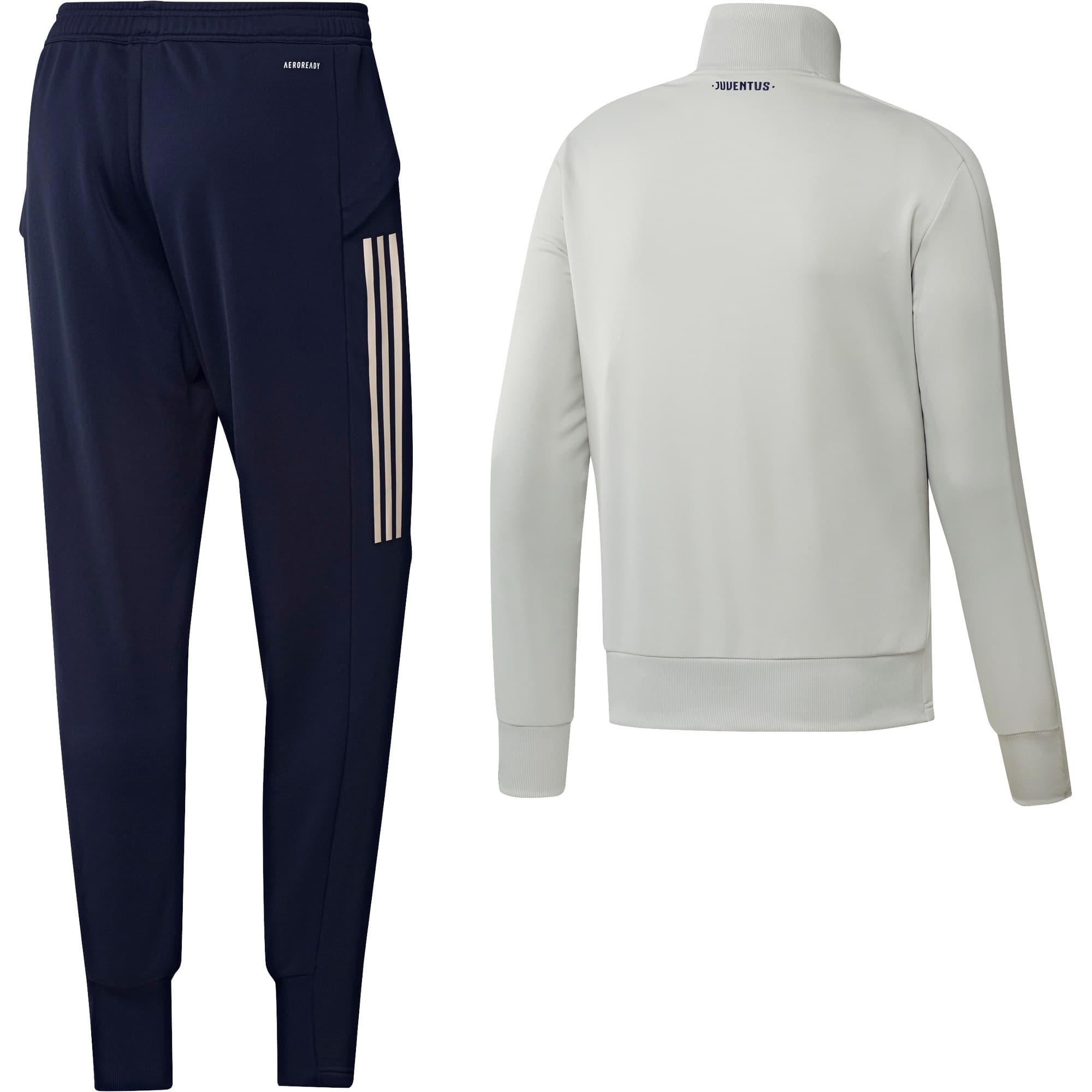 JUVENTUS POLY WHITE TRACKSUIT 2020-21 - Image 1One of the most fashion-forward clubs in football, Juventus always find a way to stand out. This adidas football track suit takes its cues from the team's training kit, with an elegant combination of grey, pink and navy. Both the top and pants are made of soft fabric that keeps you dry.