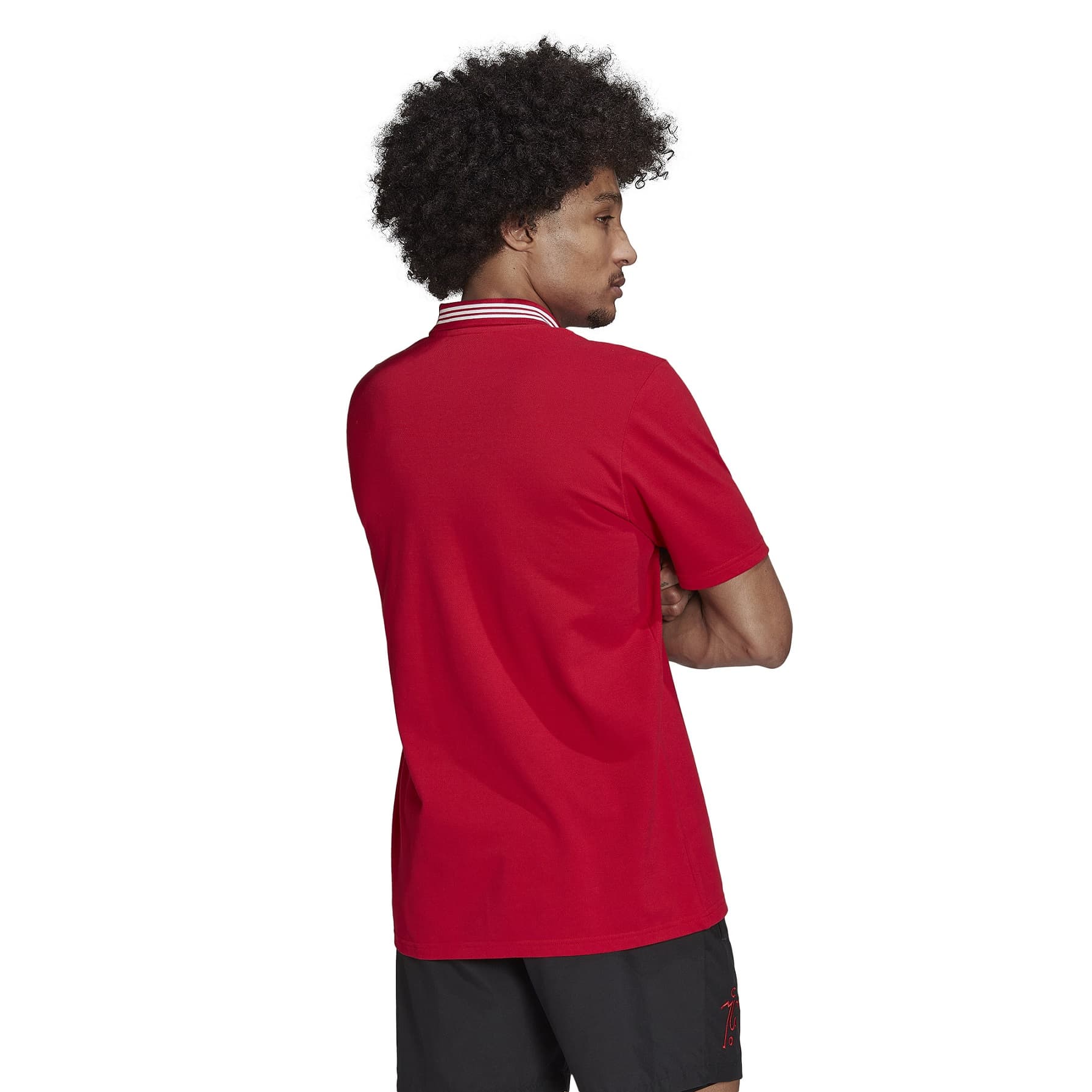 MANCHESTER UNITED RED POLO 2022-23 - Image 1"Glory in your Man Utd support. This adidas football polo shirt was built using unmistakable club elements. With those red-and-white colours and that famous badge, it will ensure there are no doubts about your on-pitch allegiances. Comfortable cotton piqué fabric keeps the classic theme going. Our cotton products support more sustainable cotton farming."
