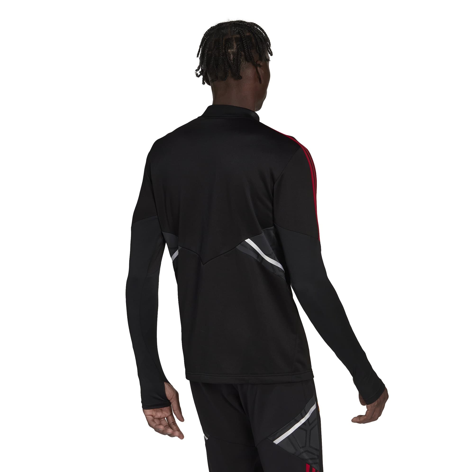 MANCHESTER UNITED TRAINING DRILL BLACK TOP 2022-23 - Image 1"Classic Man Utd. You can picture this adidas football track top standing out against the lush green turf on cup final day. That white stand-up collar, those full-length 3-Stripes, the woven badge. It all comes straight from the club's glorious DNA. It feels as good as it looks, too, thanks to its soft French terry construction. Made with 100% recycled materials, this product represents just one of our solutions to help end plastic waste."