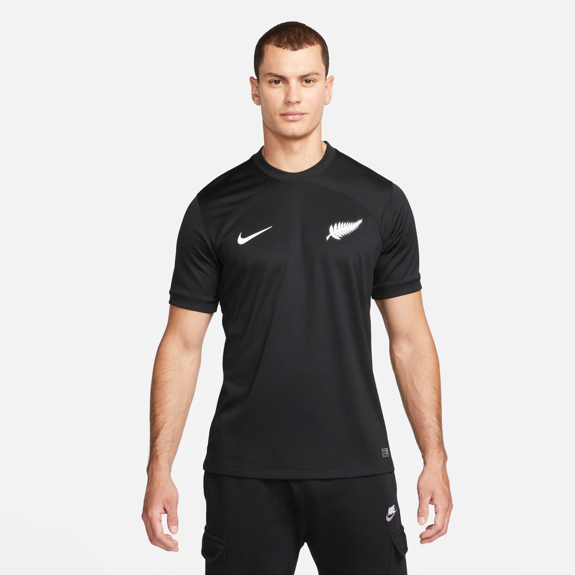 NEW ZEALAND AWAY BLACK SHIRT 2022-23 - Image 1New Zealand 2022/23 Stadium Away Men's Nike Dri-FIT Soccer Jersey Like other jerseys from our Stadium collection, this one pairs replica design details with sweat-wicking fabric to give you a game-ready look inspired by your favorite team. Nike Dri-FIT technology moves sweat away from your skin for quicker evaporation, helping you stay dry and comfortable. Replica design is modeled after what the pros wear on the field. More Details Standard fit for a relaxed, easy feel 100% polyester