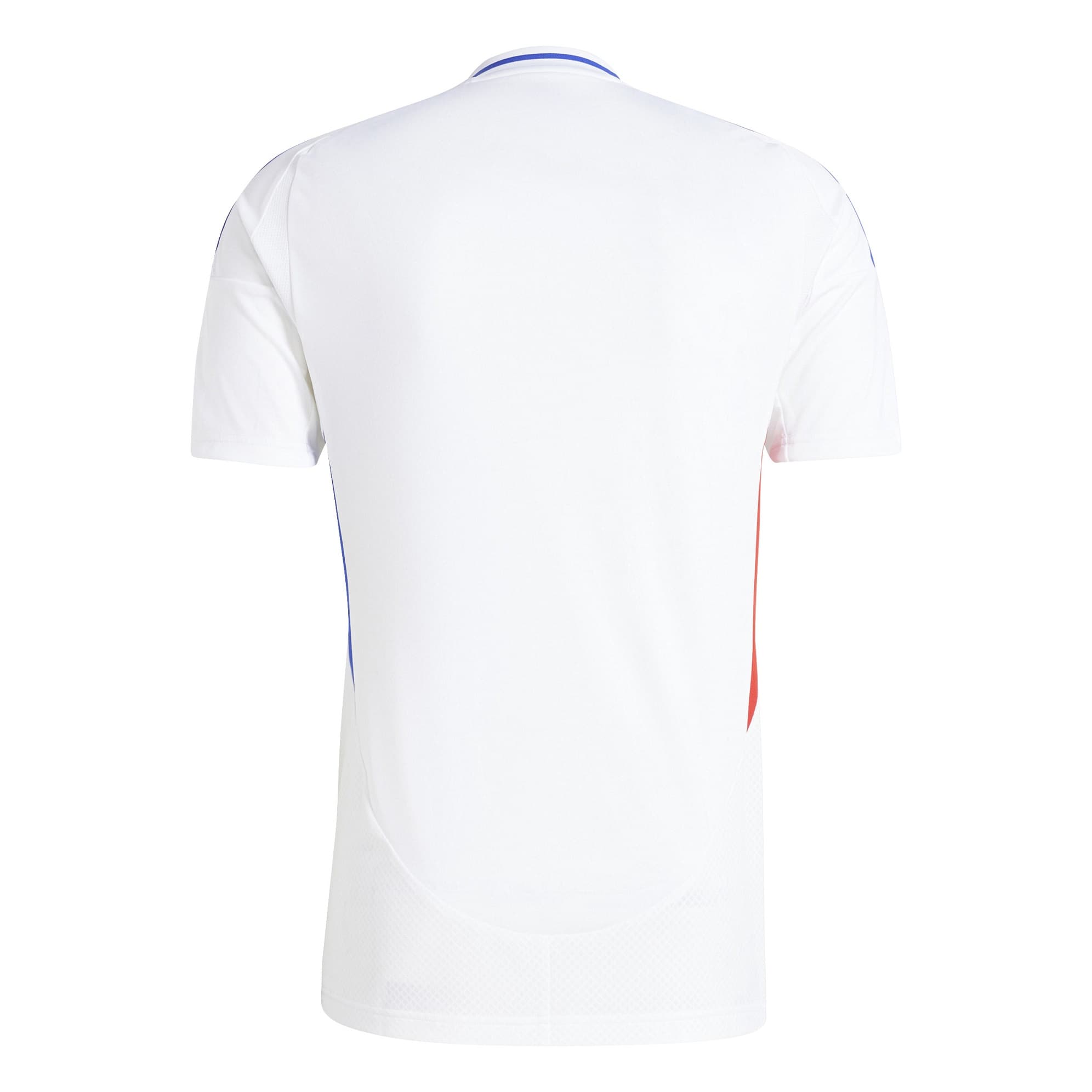 OLYMPIQUE LYON HOME SHIRT 2024-25 - Image 1Ready for a new football wave. Inspired by the two rivers that converge in the centre of Lyon, this adidas Olympique Lyonnais jersey displays meandering red and blue inserts and an "Entre Rhône & Saône" sign-off. Below the surface, moisture-managing AEROREADY makes it a comfortable wear for players and fans alike.This product is made with 100% recycled materials. By reusing materials that have already been created, we help to reduce waste and our reliance on finite resources and reduce the footprint of the products we make.