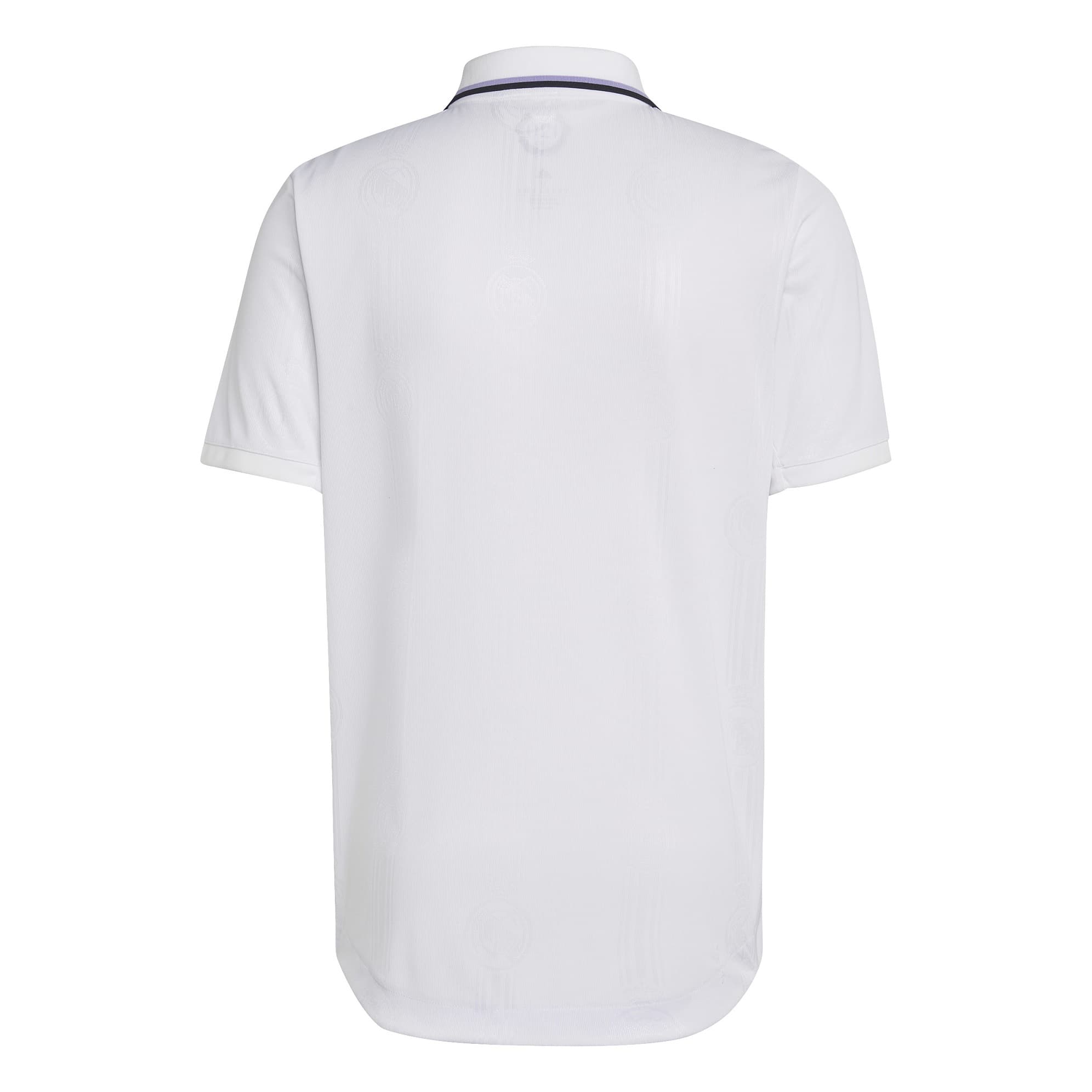 REAL MADRID AUTHENTIC MATCH SHIRT 2022-23 - Image 1"Clean, classic and created to mark a milestone. The timeless look of this adidas Real Madrid home authentic jersey is accented with light purple details and a repeated club badge engineered into its white fabric. This version of the shirt is made to perform on the pitch with cooling HEAT.RDY. Made with 100% recycled materials, this product represents just one of our solutions to help end plastic waste."