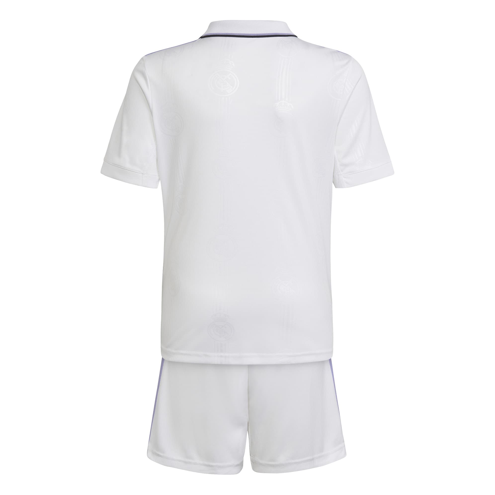 REAL MADRID JUNIOR HOME KIT 2022-23 - Image 1"Celebrate 120 years of football royalty. Clean and classic, this juniors' adidas home kit marks Real Madrid's anniversary with a timeless look and commemorative sign-off. Including a jersey, shorts and crew-length socks, it will keep you comfortable in your colours thanks to moisture-absorbing AEROREADY. Made with 100% recycled materials, this product represents just one of our solutions to help end plastic waste."