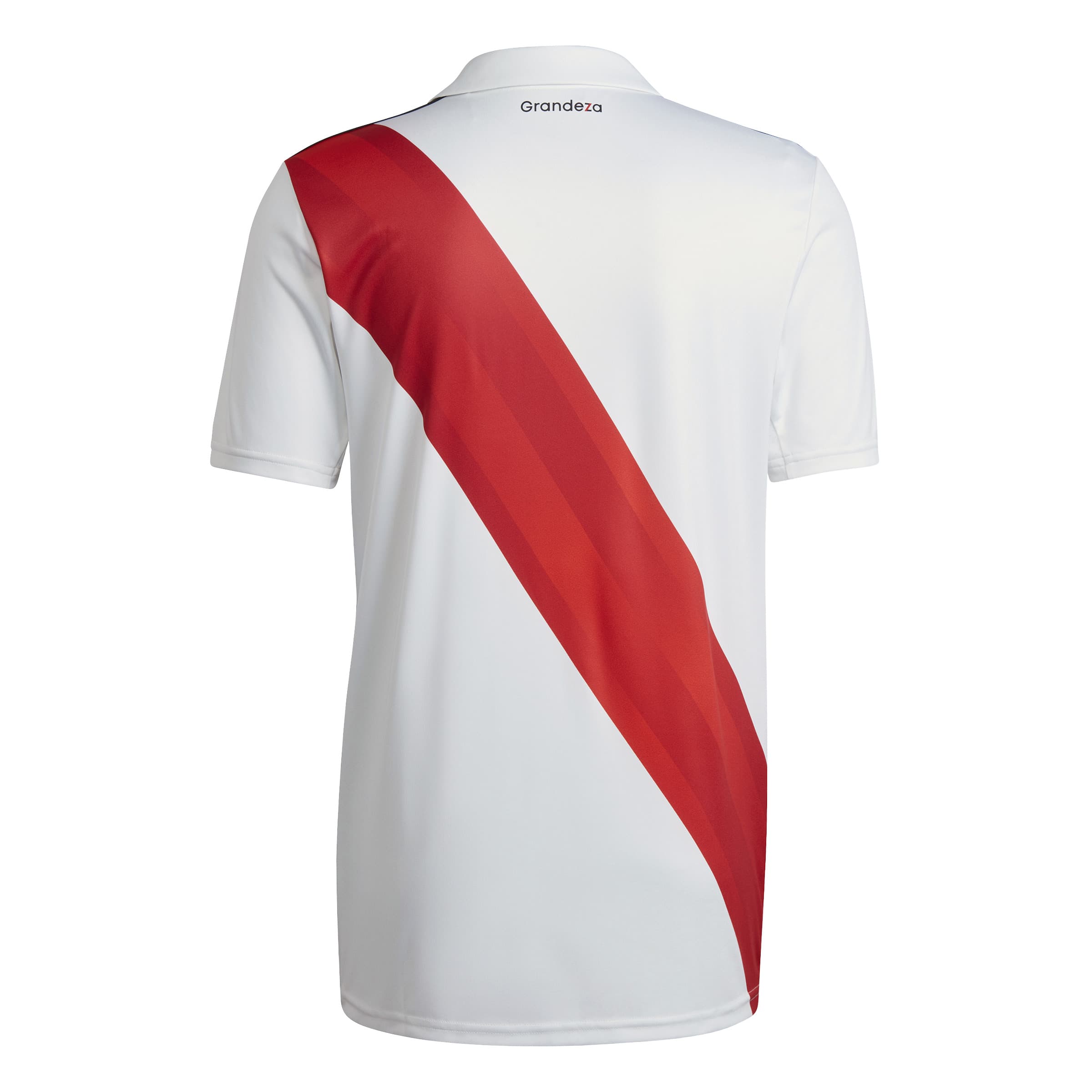 RIVER PLATE HOME SHIRT 2022-23 - Image 1"The evolution of an icon. If you look closely at this adidas football jersey, you'll see a dynamic graphic within its classic red sash. An updated club badge takes pride of place on the chest. What hasn't changed is how comfortable you'll feel when you pull it on. Moisture-wicking AEROREADY and mesh panels see to that. Made with 100% recycled materials, this product represents just one of our solutions to help end plastic waste."