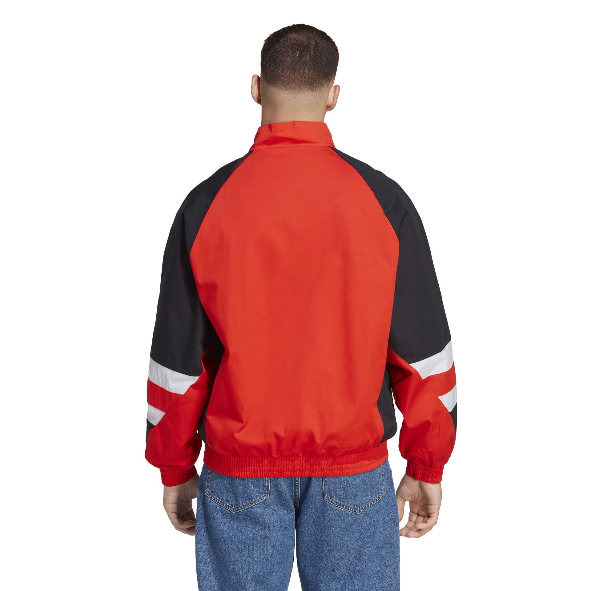 RIVER PLATE ICON JACKET 2023 - Image 1River Plate's colours and adidas Equipment style come together in this football top. Ideal for wearing on the training ground, it has a baggy, loose fit that helps it slip easily over your jersey. But it's those large 3-Stripes wrapped around the sleeves and those centrally placed team details that truly reveal its '90s roots.