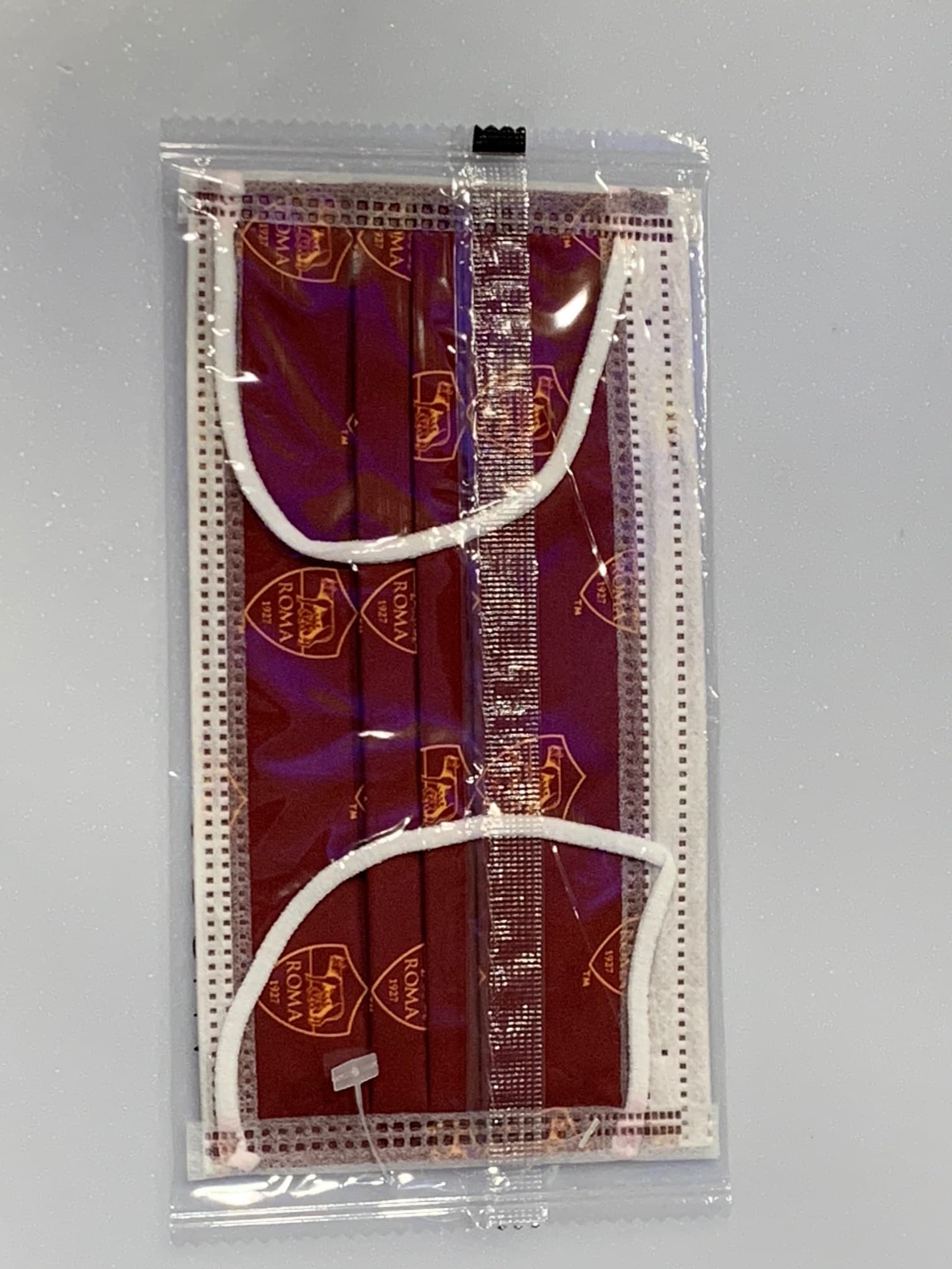 AS ROMA MASCHERINA ROSSA - Immagine 1Non si tratta di un Dispotivo Medico o DPI. Anallergico materiale di alta qualità; 3 plisettature design confortevole Altamente permeabile all'aria Anatomica regolabile, ponte nasale integrato Anello orecchio, fascia elastica, lattice free 17,5*9,5cm