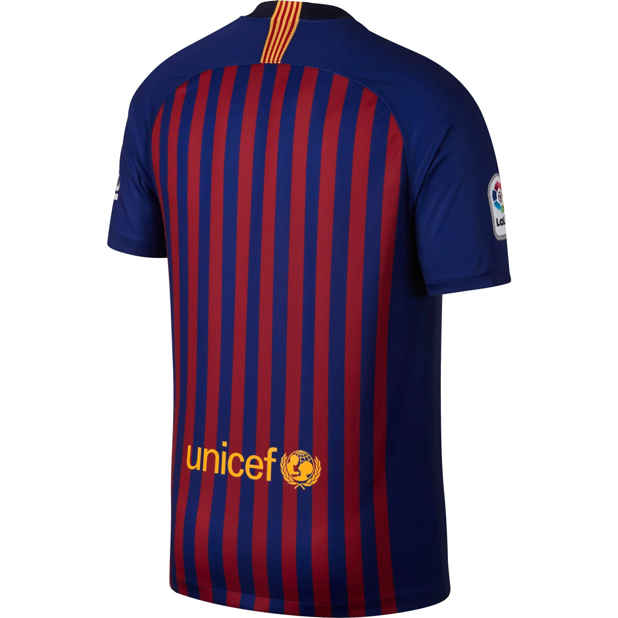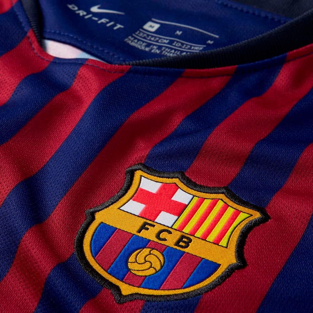 BARCELLONA MAGLIA BAMBINO 2018-19 - Immagine 1Nike Breathe FC Barcelona Stadium Home ORGOGLIO E PRESTAZIONI. La maglia da calcio Nike Breathe FC Barcelona Prima Divisa per bambini unisce dettagli della squadra, come lo stemma in tessuto, a materiali ad elevate prestazioni quali Nike Breathe, un tessuto altamente traspirante che mantiene la pelle fresca e asciutta. Il tessuto Nike Breathe mantiene la pelle fresca e asciutta. Stemma in tessuto e colori del FC Barcelona per mostrare il tuo orgoglio per la squadra. Le cuciture sullo scollo sono ridotte al minimo per un fit comodo. Maniche a raglan per una libertà di movimento naturale. Fettuccia elastica sullo sprone posteriore per il massimo comfort. 100% POLYESTER