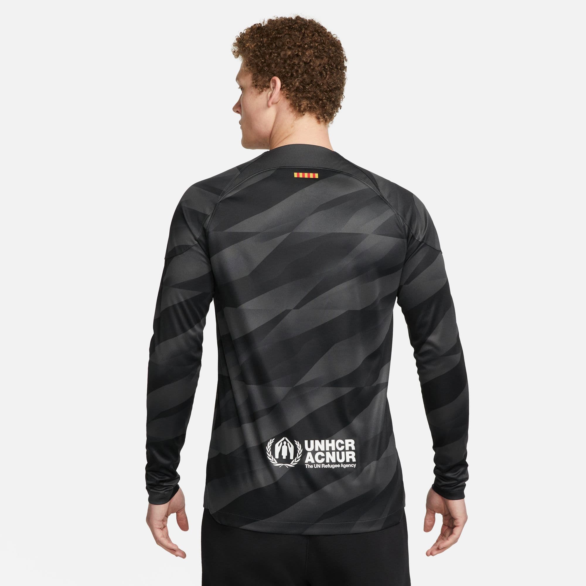 BARCELLONA MAGLIA PORTIERE 2023-24 - Immagine 1FC Barcelona 2023/24 Stadium Goalkeeper Maglia da calcio a manica lunga Nike Dri-FIT - Uomo Questa gonna da tennis dallo stile intramontabile unisce il classico design pensato per il campo con un profilo a righe in vita. Il leggero tessuto e gli shorts integrati offrono copertura e comfort per tutti i tuoi movimenti dinamici, così potrai sentirti inarrestabile proprio come gli atleti che ami. Infila facilmente la palla nella tasca degli shorts e preparati al prossimo servizio. La tecnologia Nike Dri-FIT allontana il sudore per favorirne una rapida evaporazione e mantenere la pelle asciutta per un comfort ideale. Gli shorts integrati in spandex offrono una copertura ideale, mentre la tasca sulla gamba destra è perfetta per la palla o il telefono. L'elastico in vita dona un fit stabile. La patch NikeCourt richiama la storia del tennis per incoraggiarti a scrivere il futuro. More Details Corpo: 100% poliestere. Shorts: 78% poliestere, 22% spandex