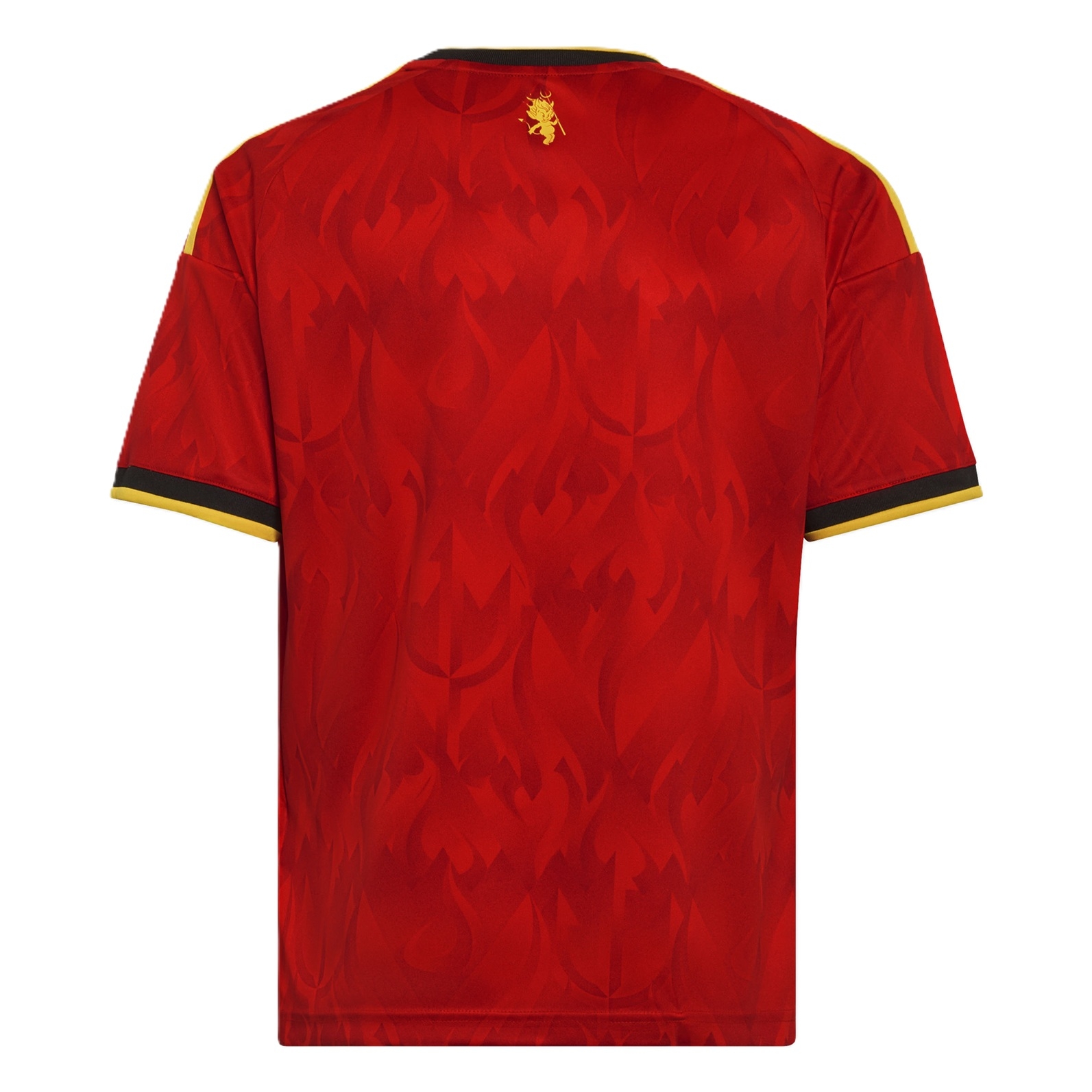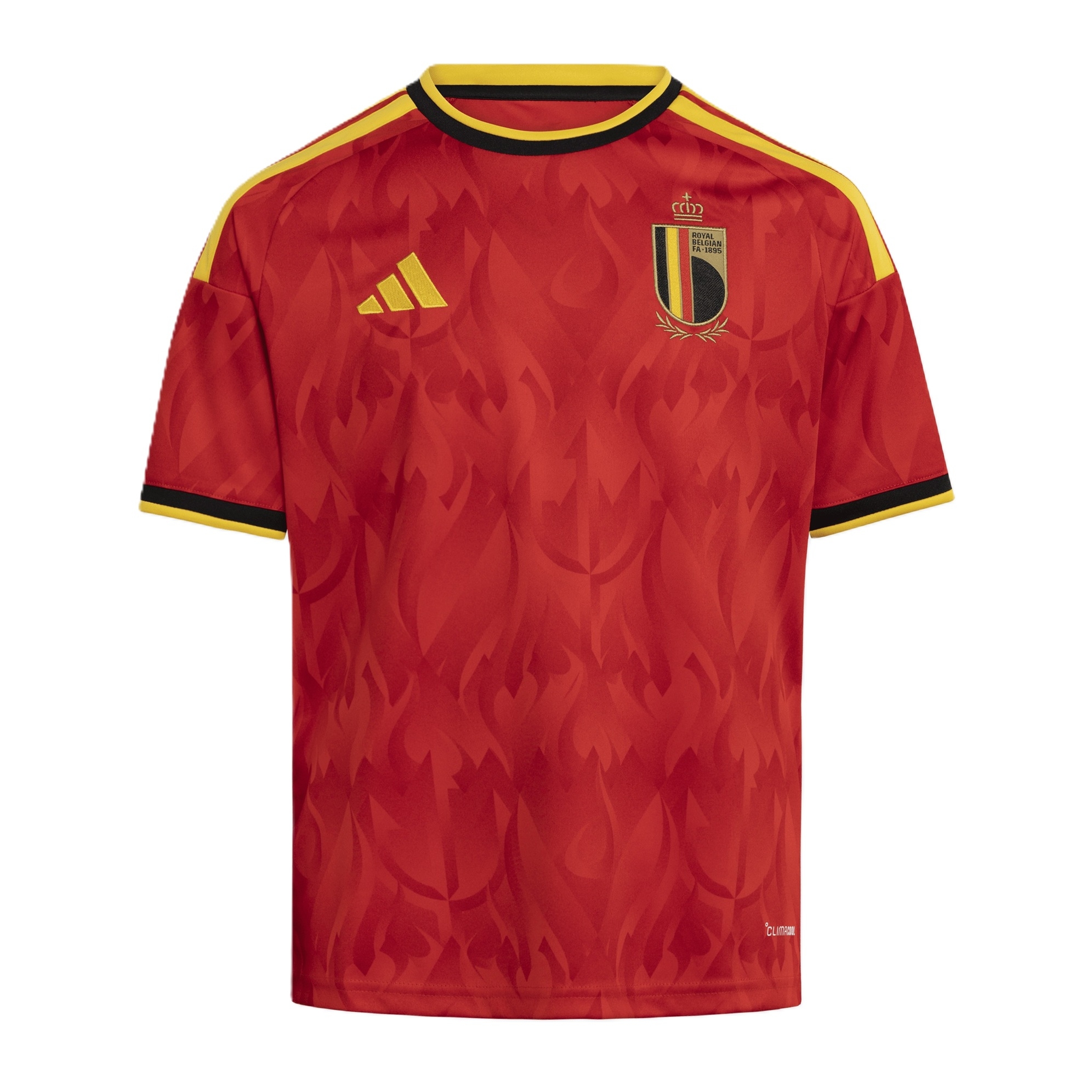 "Alimenta il loro amore per il gioco con la maglia Belgium 26 Home. Ispirata allo spirito focoso dei Red Devils e decorata con audaci motivi di diavoli e fiamme, cattura lo spirito della squadra belga. Realizzata per i bambini più attivi, incorpora la tecnologia adidas Climacool per aiutarli a sentirsi freschi per tutta la partita grazie alle fibre ad asciugatura rapida per una sensazione di freschezza sulla pelle. La sottile silhouette da calcio è firmata dal logo adidas e dallo stemma della Royal Belgian Football Association per un look pieno di carattere e orgoglio nazionale.
