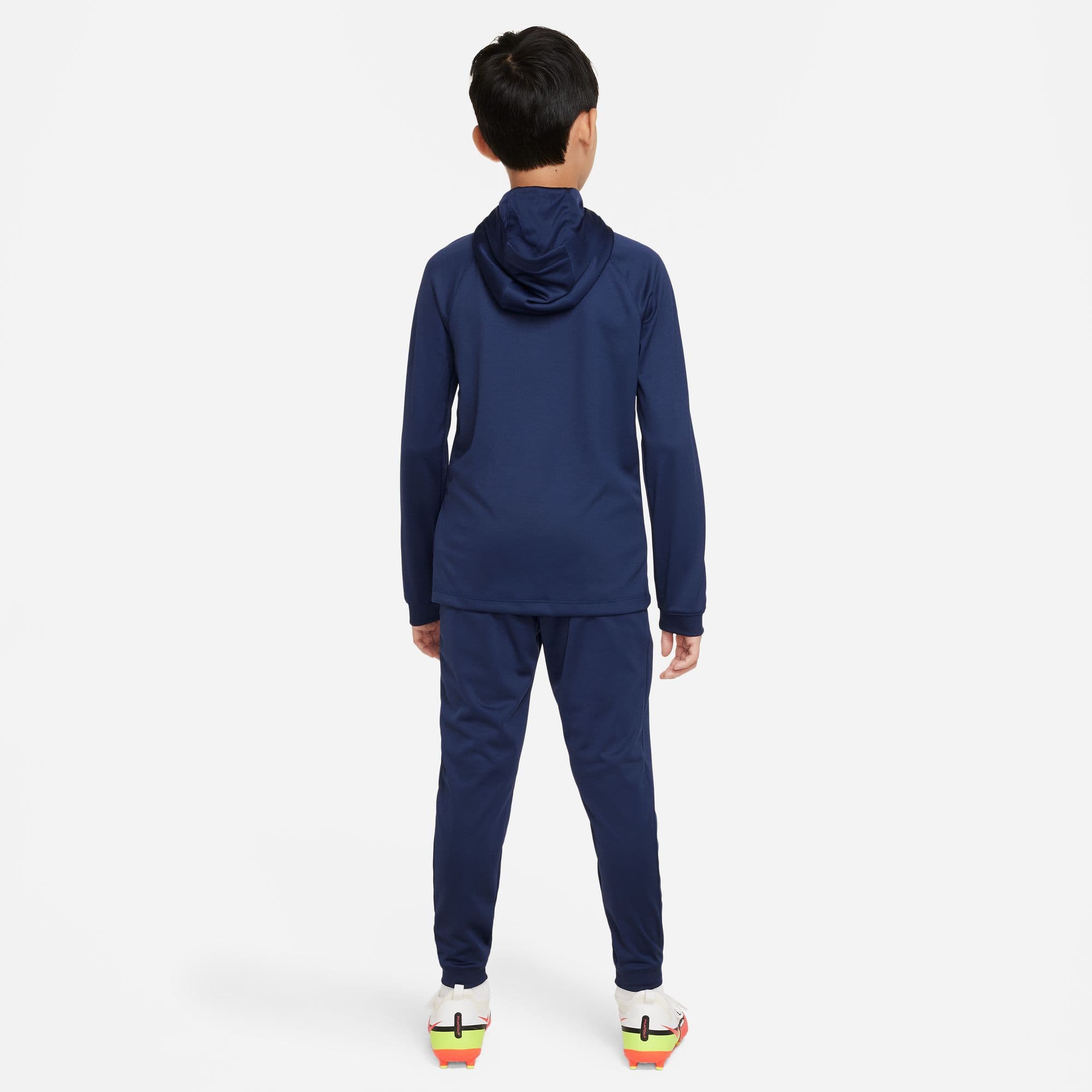 FRANCIA TUTA BAMBINO 2022-23 - Immagine 1MIGLIORA IL TUO ALLENAMENTO. La tuta FFF Strike presenta dettagli di design specificamente pensati per le stelle nascenti del calcio. Il fit confortevole e il tessuto traspirante donano una freschezza ideale per consentirti di affinare le tue abilità con la massima concentrazione. Resta fresco La tecnologia Nike Dri-FIT allontana il sudore per favorirne una rapida evaporazione e mantenere la pelle asciutta per un comfort eccellente. Spazio sicuro Le tasche laterali sono pensate per i tuoi oggetti indispensabili. Versatilità e praticità La zip sulla parte inferiore della gamba consente cambi rapidi senza togliere le scarpe. More Details Standard fit per uno stile confortevole Pantaloni con elastico e coulisse in vita Giacca con zip a tutta lunghezza Giacca: Corpo: 100% poliestere. Inserti: 94% poliestere/6% spandex. Fodera cappuccio: 100% poliestere. Pantaloni: 100% poliestere.