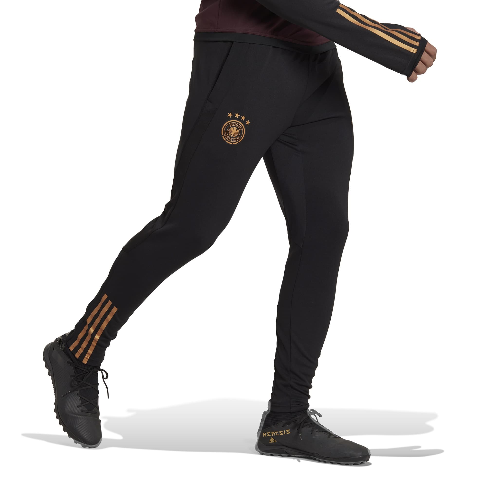 GERMANIA PANTALONI ALLENAMENTO 2022-23 - Immagine 1"Progettati per dare il meglio nelle occasioni che contano, questi pantaloni adidas fanno parte della linea da allenamento Tiro 23 della Nazionale di calcio tedesca. La tecnologia antiumidità AEROREADY e gli inserti in mesh traspirante ti aiutano a dare il massimo in campo, mentre le zip alle caviglie ti consentono di sfilarli senza dover togliere le scarpe. Realizzato integralmente con materiali riciclati, questo prodotto è solo una delle nostre azioni concrete per contrastare l'inquinamento causato dai rifiuti plastici."