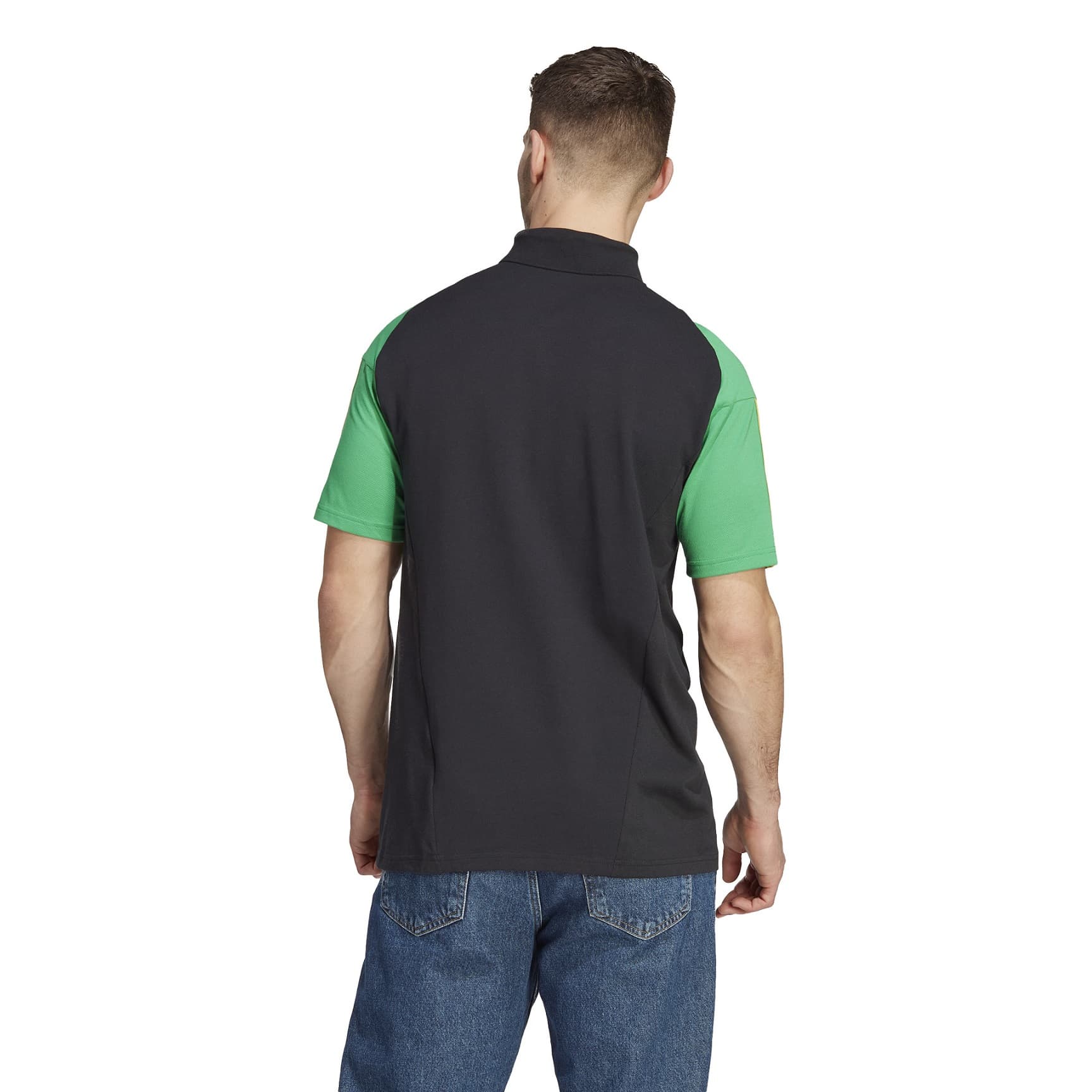 JAMAICA POLO NERA 2023-24 - Immagine 1"Mostra da che parte stai anche mentre ti rilassi. Questa polo fa parte della collezione da allenamento adidas Tiro 23 della Giamaica ed è perfetta per i tuoi momenti di riposo. La struttura in morbido jersey ti regala un comfort eccezionale. Lo stemma in tessuto mostra a tutti per chi fai il tifo. Almeno il 70% di questo prodotto è costituito da un mix di materiali riciclati e rinnovabili." Vestibilità regolare Jersey, 65% poliestere riciclato / 35% cotone