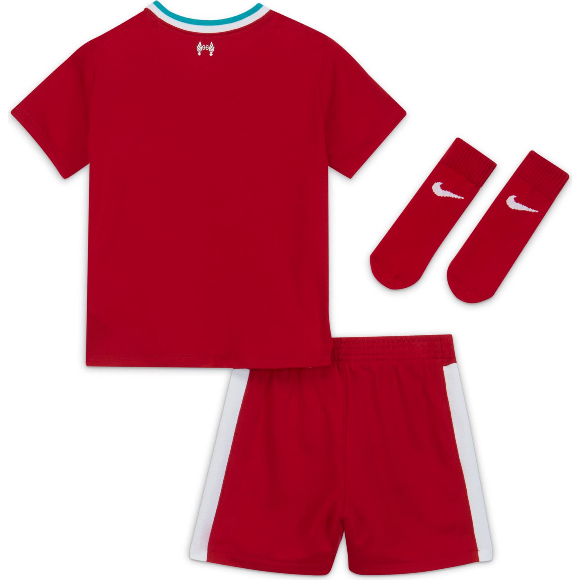 LIVERPOOL COMPLETO NEONATO 2020-21 - Immagine 1Liverpool FC Home Baby/Toddler Soccer Kit PICCOLA TAGLIA. GRANDE COMFORT. I campioni di domani hanno bisogno della divisa giusta. La divisa Liverpool FC Home comprende maglia, shorts e calze per un look completo ispirato ai professionisti. Il morbido tessuto traspirante allontana il sudore per un comfort che dura tutto il giorno. Tessuto Nike Breathe che mantiene freschi i piccoli atleti. Tecnologia Nike Dri-FIT per pelle asciutta e comfort. Il design autentico è lo stesso indossato dai professionisti nelle partite in casa. More Details Standard fit per un comfort rilassato 100% poliestere riciclato Lavabile in lavatrice