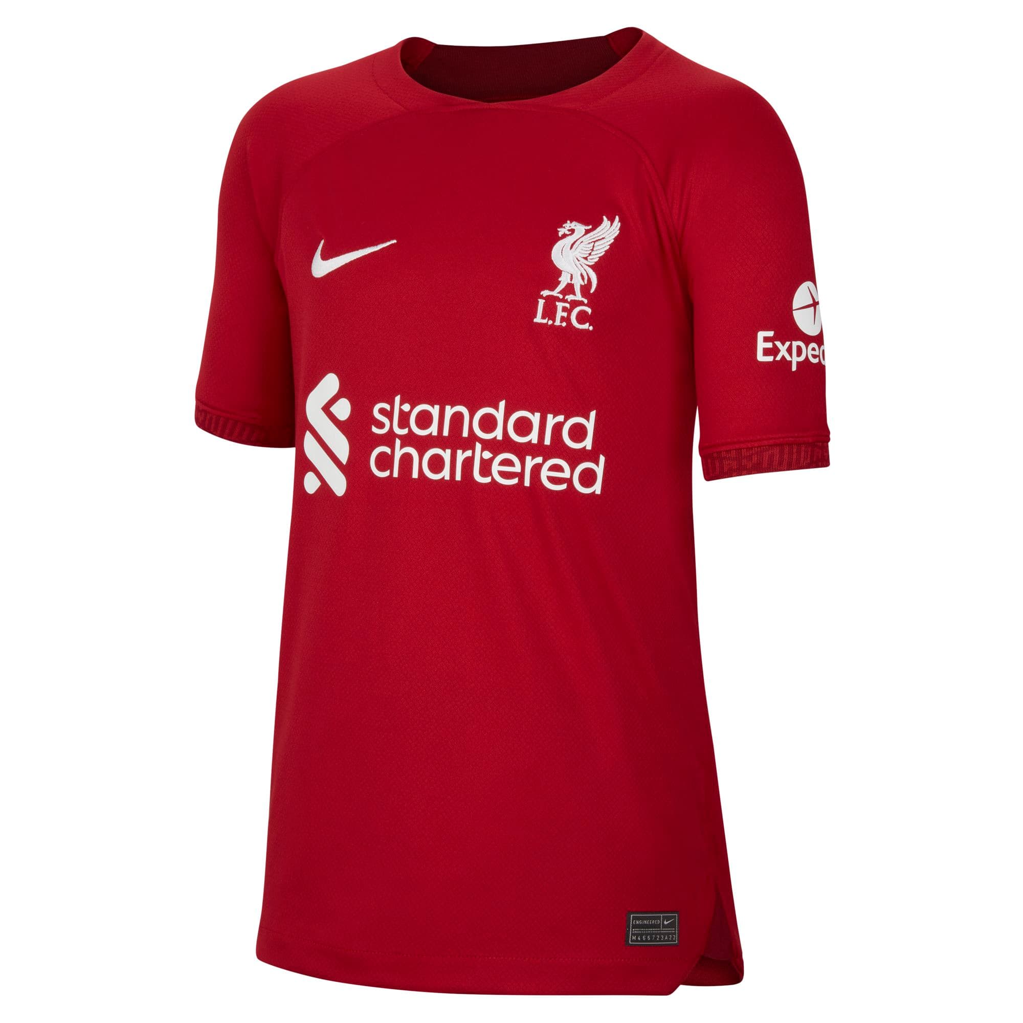 LIVERPOOL MAGLIA BAMBINO HOME 2022-23 - Immagine 1La Nuova Maglia Bambino Home del Liverpool 2022-23. Acquista ora la nuova divisa NIKE del Liverpool e personalizzala con Salah, Firmino, Manè, Virgil o col tuo numero e nome. Puoi anche applicare le toppe Champions League o Premier League.