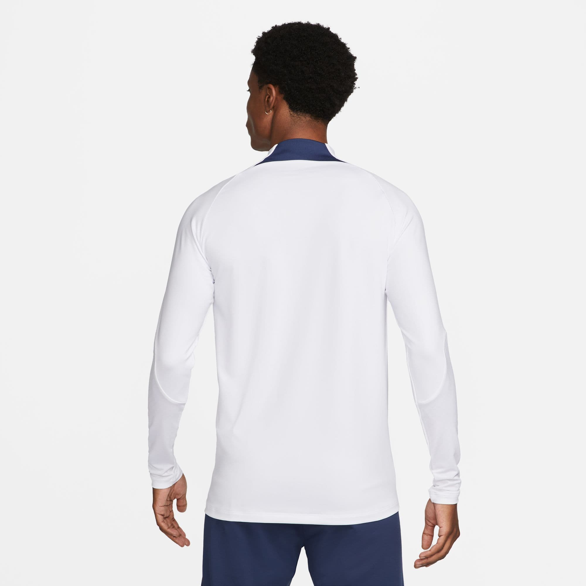 PSG FELPA ALLENAMENTO 1/4 ZIP BIANCA 2022-23 - Immagine 1MIGLIORA IL TUO ALLENAMENTO. La maglia Paris Saint-Germain Strike presenta dettagli di design specificamente pensati per le stelle nascenti del calcio. Il fit avvolgente ed essenziale non ostacola le tue azioni, mentre la tecnologia traspirante offre controllo e freschezza, consentendoti di perfezionare le tue abilità. Pelle asciutta La tecnologia Nike Dri-FIT allontana il sudore per favorirne una rapida evaporazione e mantenere la pelle asciutta per un comfort ideale. Fit sempre perfetto Gli occhielli per il pollice invisibili tengono a posto le maniche quando ti muovi e scompaiono quando non vengono utilizzati. Copertura estesa L'orlo posteriore allungato offre una copertura ideale. More Details Slim fit per uno stile su misura Corpo: 90-91% poliestere/9-10% spandex. Inserti: 94-95% poliestere/5-6% spandex.