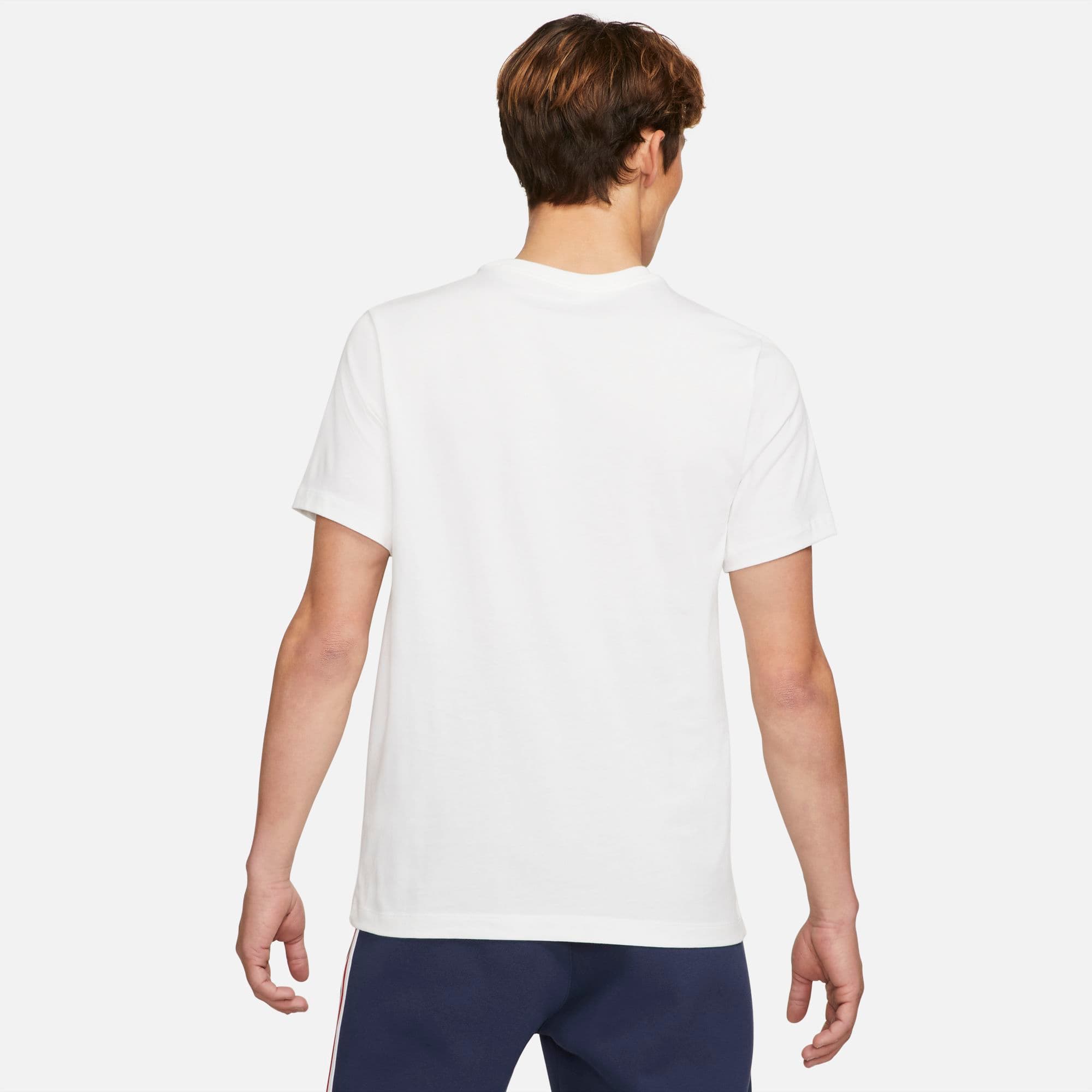 PSG T-SHIRT JORDAN BIANCA 2021-22 - Immagine 1Paris Saint-Germain Wordmark Men's T-Shirt I VIVACI COLORI DEL PARIS IN CASA. Celebra il Paris in casa con la t-shirt Paris Saint-Germain Wordmark. Realizzata in cotone morbido e leggero. Questa maglietta si contraddistingue per una grafica sul petto grintosa ispirata all'iconica riga Hechter del club. Tessuto in cotone morbido e leggero per tutti i giorni. Fit rilassato e facile da indossare, ideale per ogni abbinamento. More Details Standard fit Jordan Scollo a costine Grafica stampata Stemma del club cucito 100% cotone