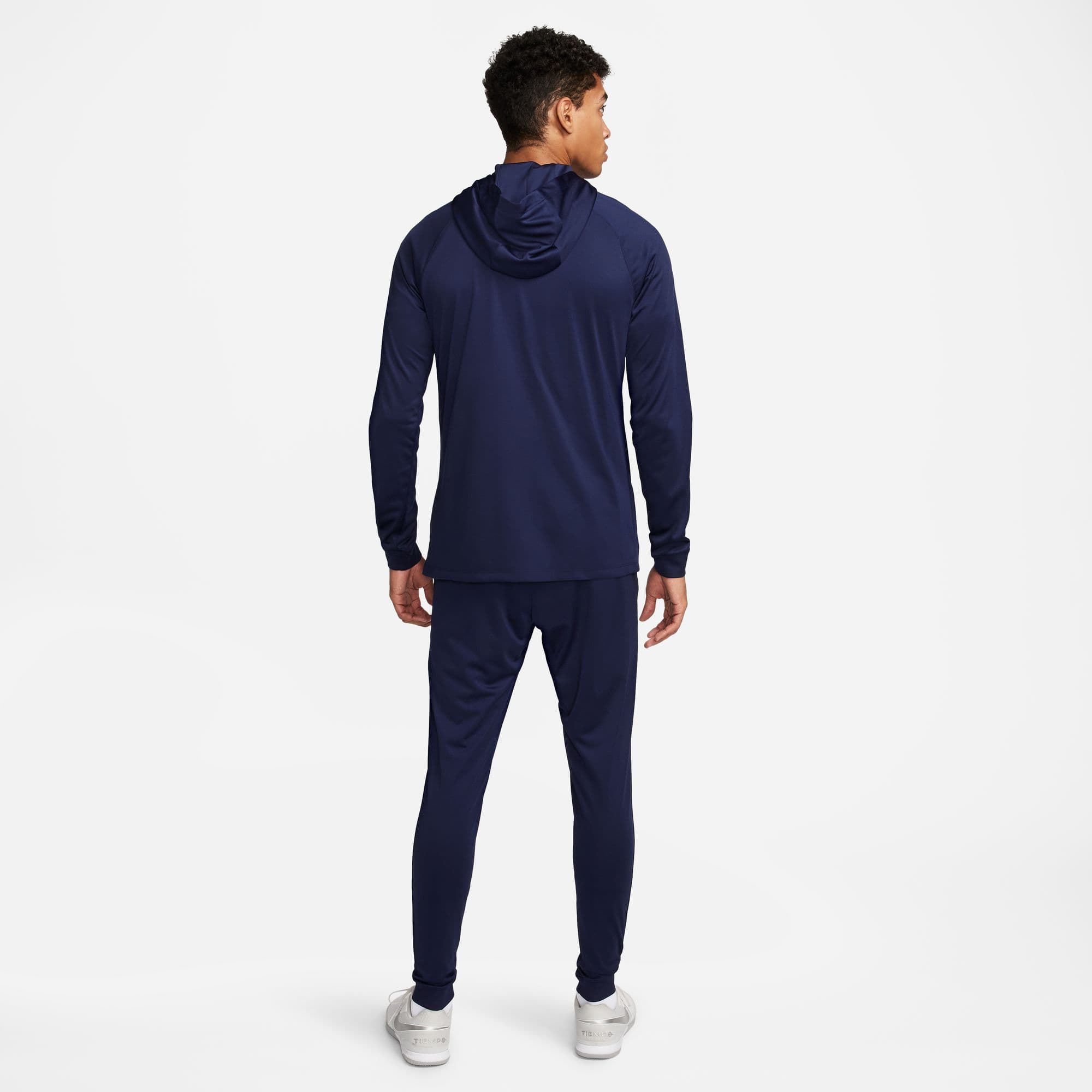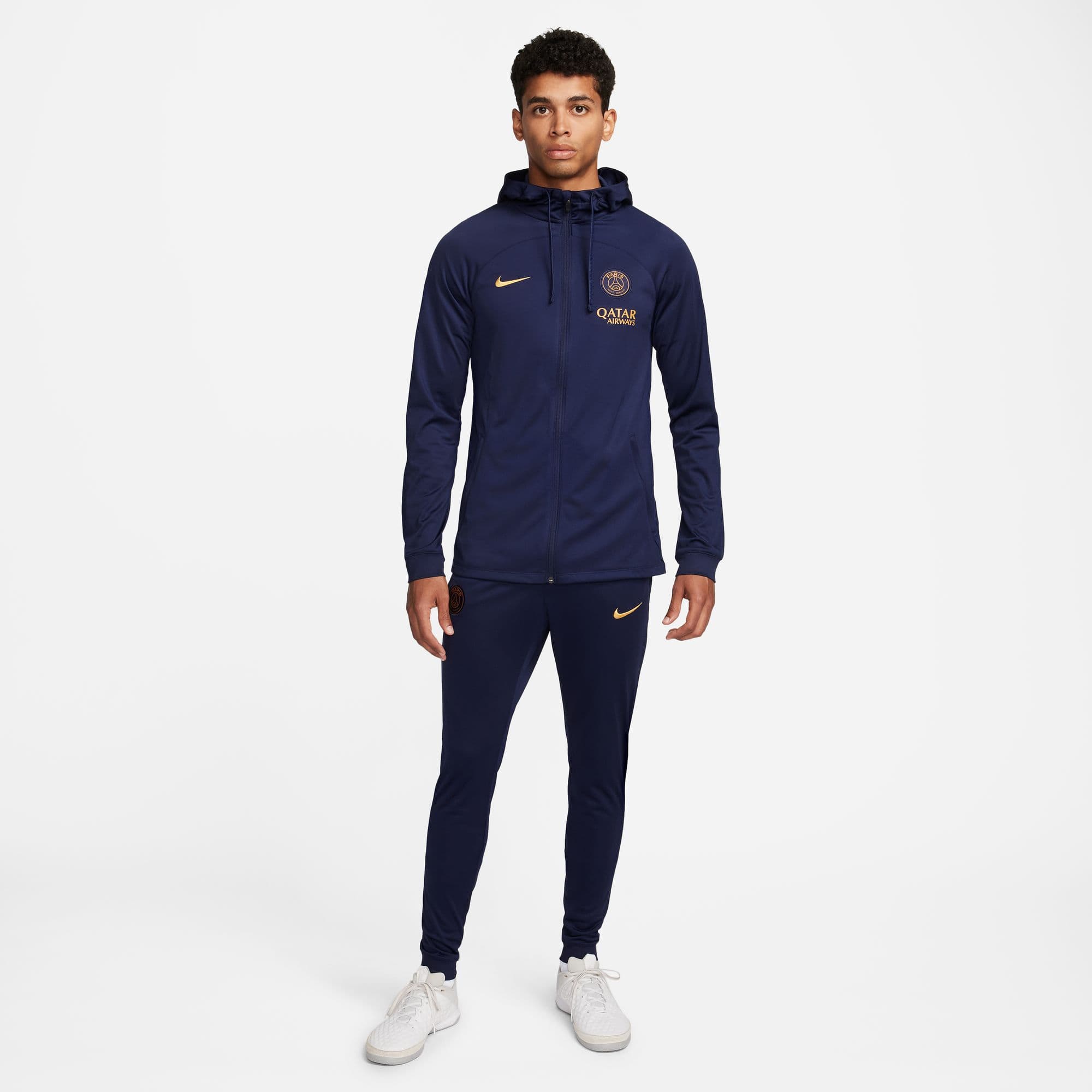 PSG TUTA PRESENTAZIONE BLU 2023-24 - Immagine 1Paris Saint-Germain Strike Men's Nike Dri-FIT Hooded Soccer Tracksuit Questo capo è arricchito da dettagli di design specificamente pensati per le stelle nascenti del calcio. Il fit avvolgente ed essenziale elimina ogni ostacolo tra te e il pallone, mentre il tessuto traspirante assicura freschezza e concentrazione, consentendoti di perfezionare le tue abilità senza impedimenti. La tecnologia Nike Dri-FIT allontana il sudore per favorirne una rapida evaporazione e mantenere la pelle asciutta per un comfort eccellente. Il leggero tessuto in maglia offre un fit morbido e liscio. More Details Pantaloni con elastico e coulisse in vita Bordi a costine sulla giacca e sui pantaloni Tasche anteriori su entrambi i capi 100% poliestere